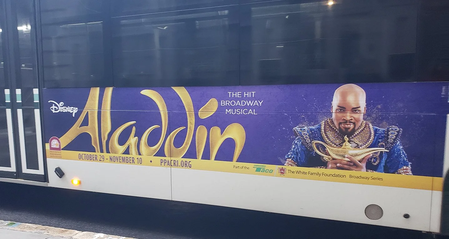 A public transportation bus ad created for the 2018 Broadway Tour of